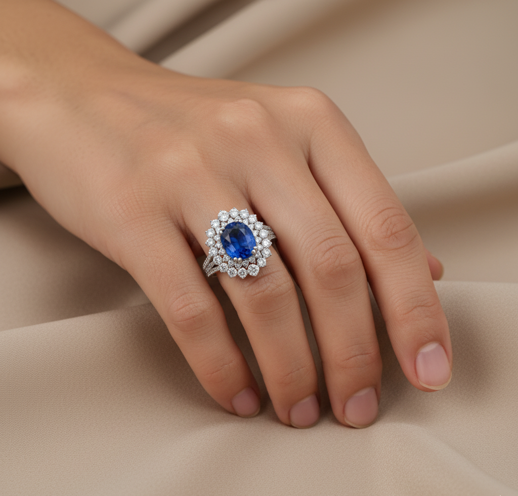 A polished sterling ring showcasing a vibrant blue sapphire, finely faceted for brilliant clarity—clean, modern sophistication with a timeless allure.