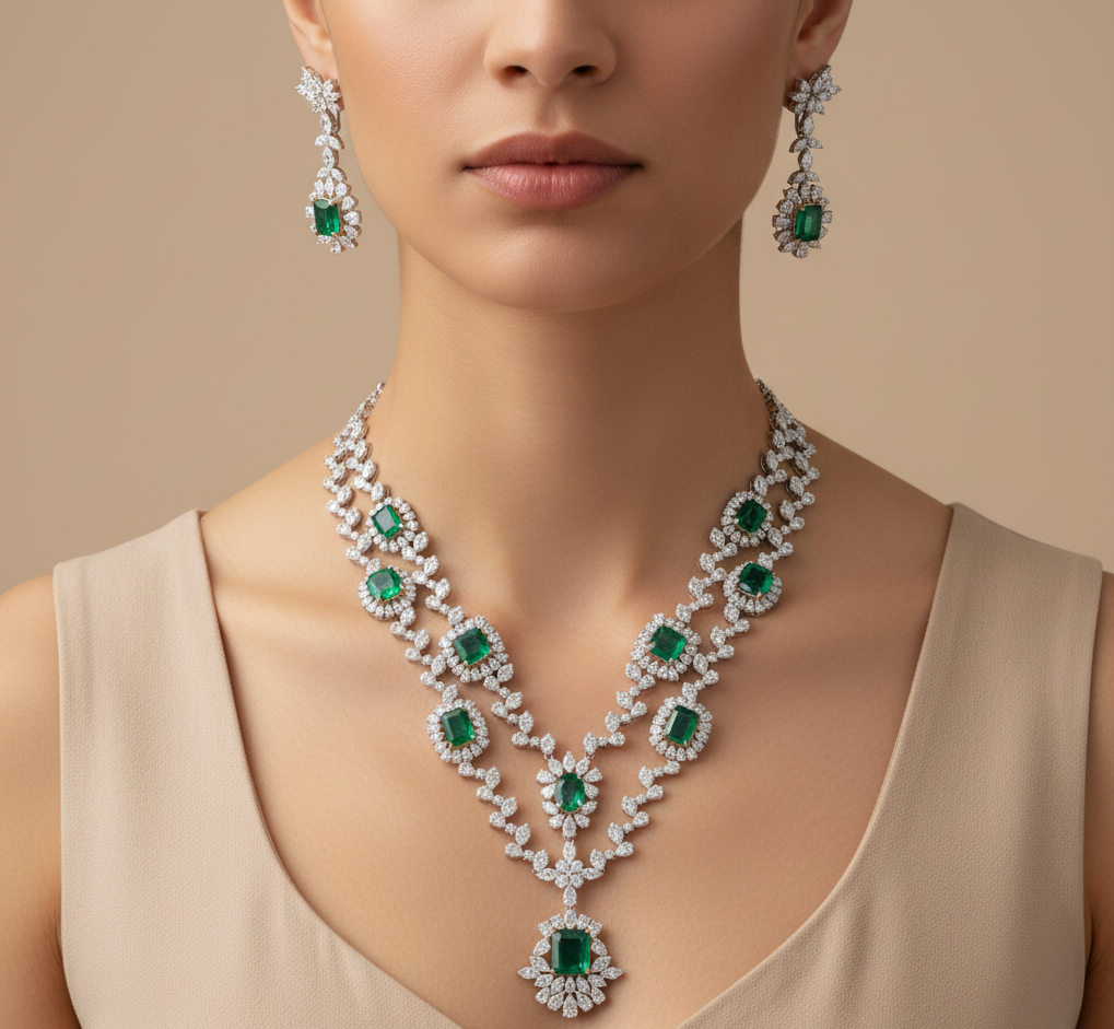 Green Emerald Diamond Necklace