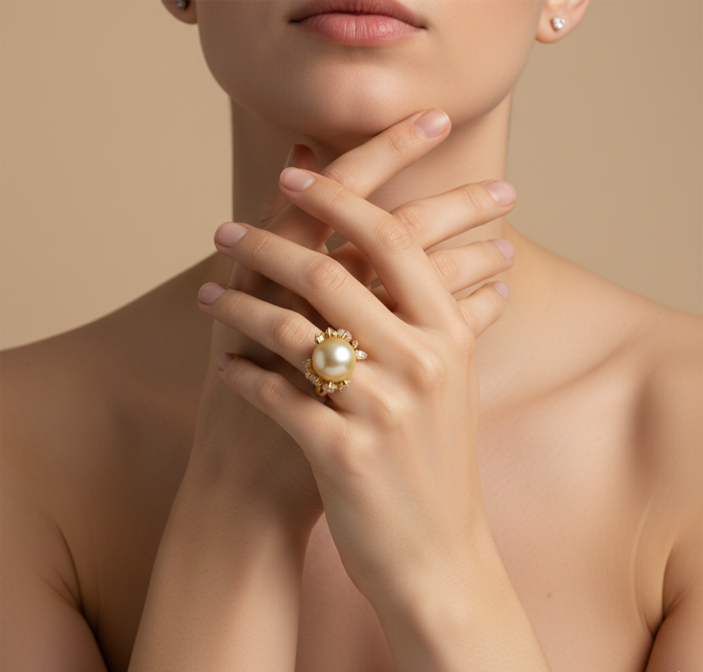 A sculptural masterpiece for your hand. At its heart rests a smooth, gleaming golden orb, framed by two subtly raised accents on either side creating a harmonious balance of symmetry and shine. The polished, rounded form invites both sight and touch, making it feel as though you’re holding a piece of wearable art. It’s bold yet refined, modern yet timeless perfect for elevating any look with understated drama.