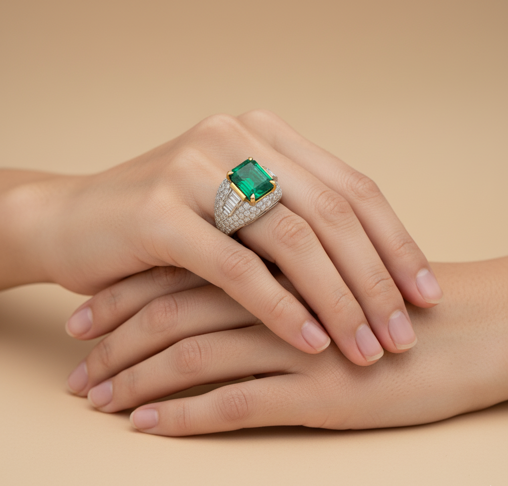 Green Emerald Diamond Ring
