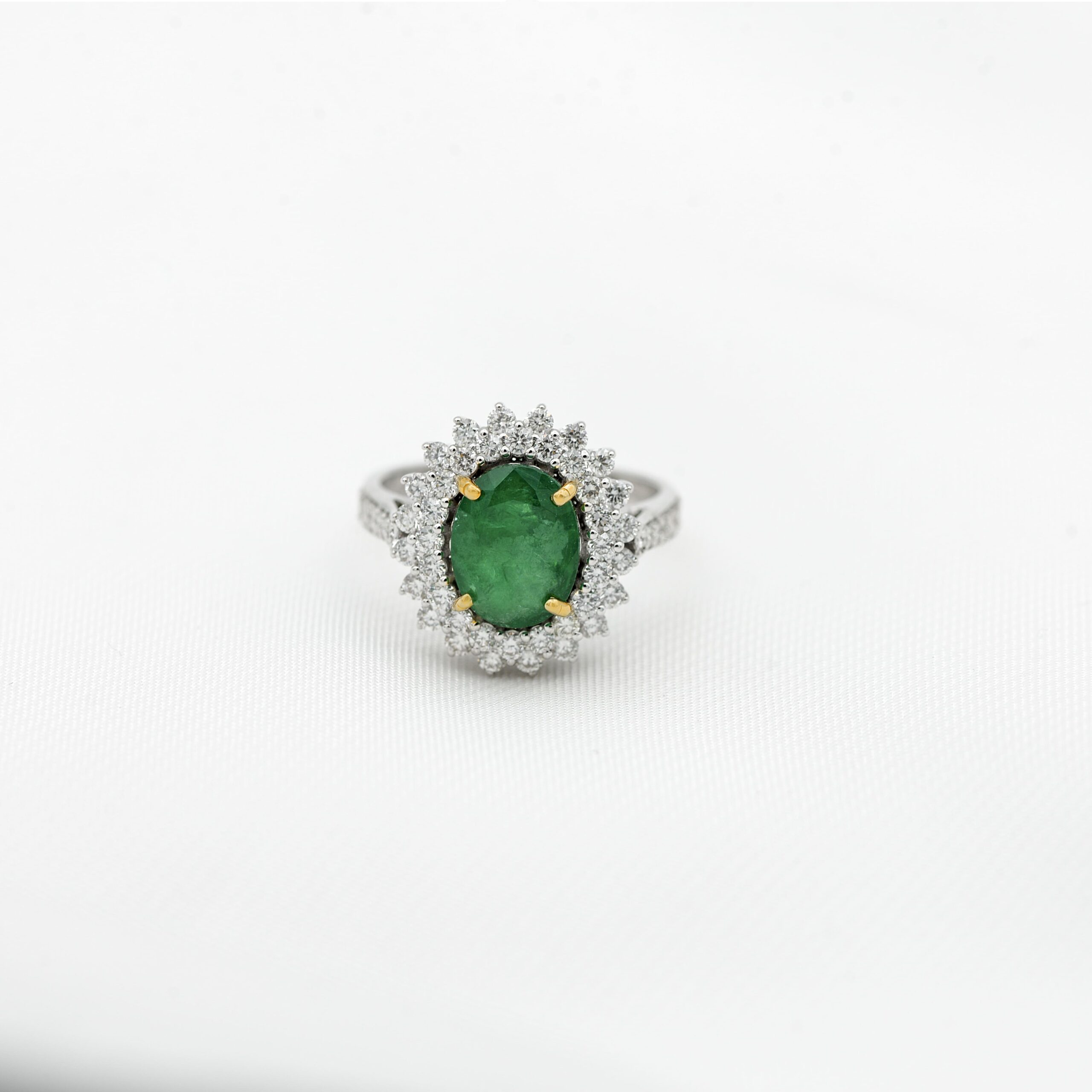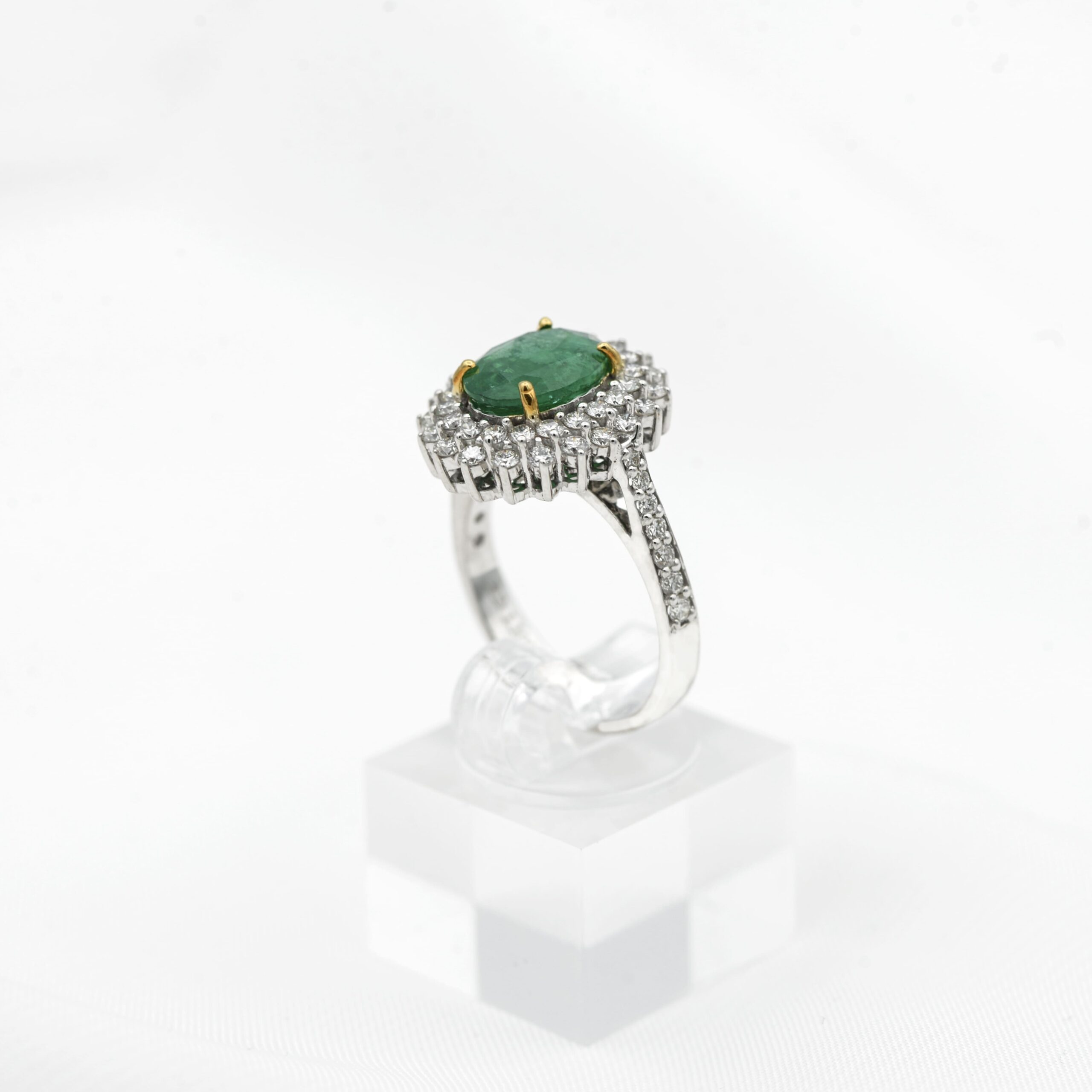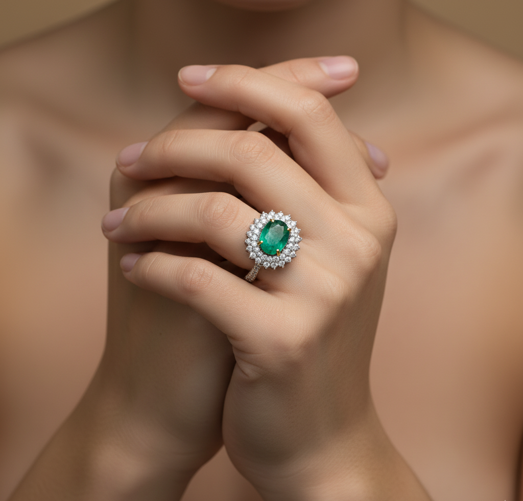 Green Emerald Diamond Ring