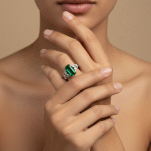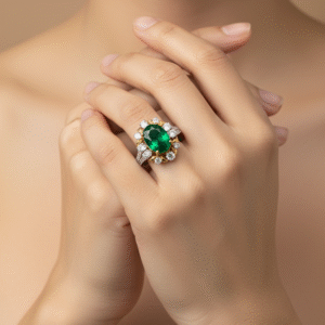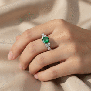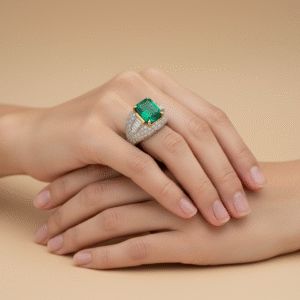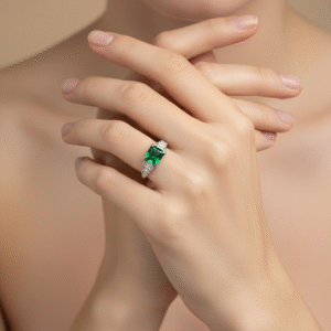 Green Emerald Diamond Ring